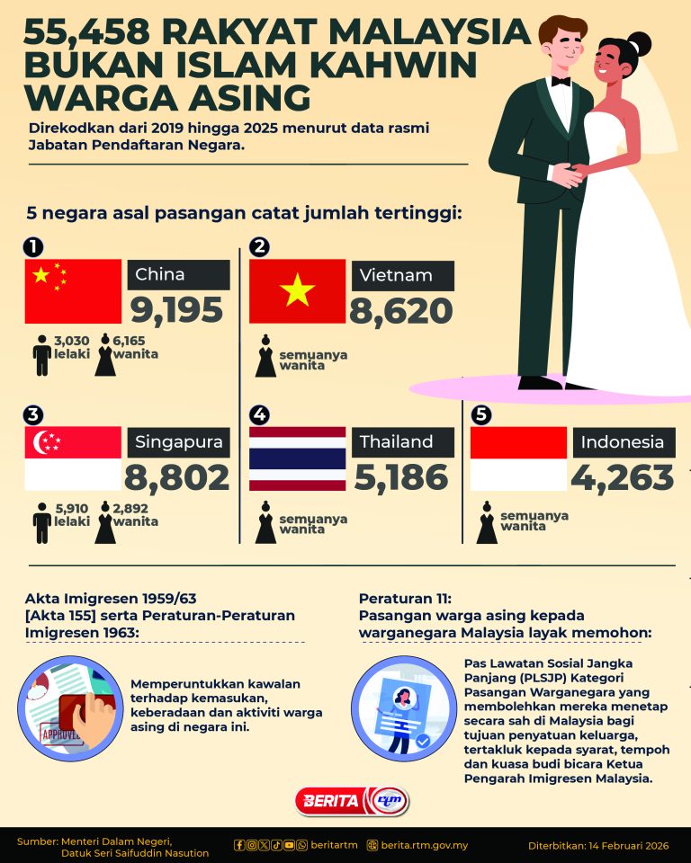 55,458 RAKYAT MALAYSIA BUKAN ISLAM KAHWIN WARGA ASING