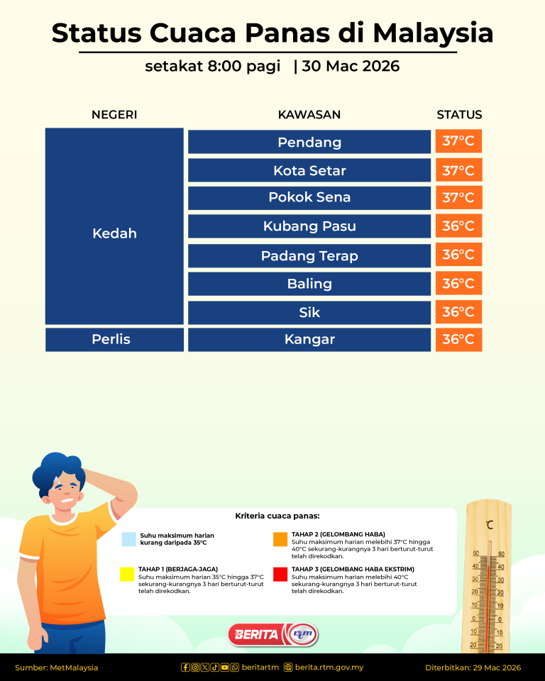 STATUS CUACA PANAS DI MALAYSIA SETAKAT 8:00 PAGI | 30 MAC 2026
