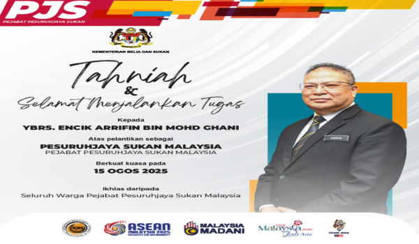 KUALA LUMPUR, 15 Ogos – Bekas pemain hoki kebangsaan, Arrifin Mohd Ghani dilantik Pesuruhjaya Sukan (PJS) yang baharu berkuat kuasa hari ini dengan kontrak selama dua tahun.