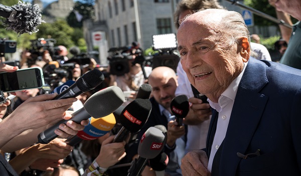 (Bekas presiden FIFA Sepp Blatter melihat dikerumuni media selepas keputusan