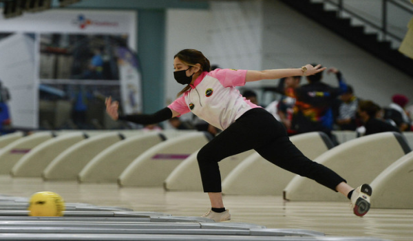 (Atlet tenpin boling Sarawak, Nur Hazirah Ramli beraksi dalam acara tenpin boling kategori women’s double akhir pada SUKMA 2022/BERNAMA)