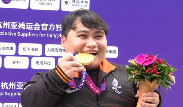 HANGZHOU, 25 Oktober- Kontijen negara Bonnie Bunyau Gustin berjaya merangkul pingat emas ke-5 melalui acara angkat berat kategori 72 kilogram dalam saingan Sukan Para Asia (APG) 2022.
