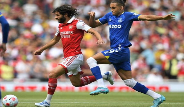 (Pemain tengah Arsenal dari Mesir, Mohamed Elneny mencabar penyerang England Everton,