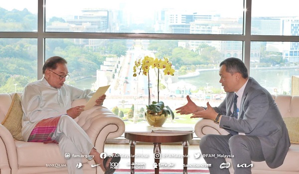 “Saya juga mengucapkan terima kasih kepada Datuk Seri Anwar Ibrahim, kerana memberi saya ruang berkongsi visi dan misi FAM, Peta Hala Tuju FAM (F:30) serta perkembangan pembinaan ibu pejabat baharu FAM dan pusat latihan kebangsaan di Putrajaya,” katanya dalam satu hantaran di laman Facebook FAM hari ini.