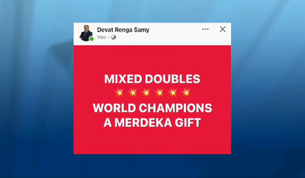 KUALA LUMPUR, 31 Ogos – Kemenangan beregu campuran negara, Chen Tang Jie-Toh Ee Wei dalam Kejohanan Badminton Dunia 2025 mencetuskan gelombang kegembiraan rakyat Malaysia di media sosial, yang menyifatkan kejayaan itu sebagai “hadiah paling manis” sempena sambutan Hari Kebangsaan tahun ini.