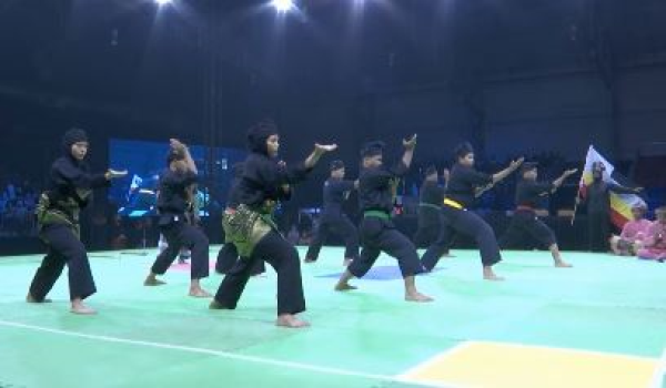 (Persembahan silat semasa pembukaan Kejuaraan Pencak Silat Dunia 2022)