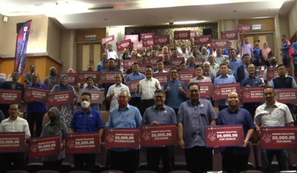 (Mohd Hairi Mad Shah (tengah) menyampaikan Cek Subsidi Pengelolaan Karnival Bangsa Johor 2022