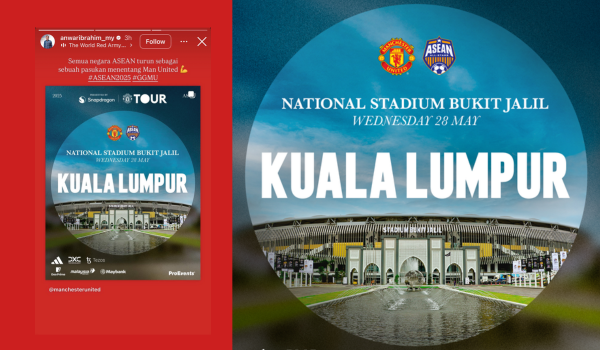 “Semua negara ASEAN turun sebagai pasukan menentang Man United #ASEAN2025 #GGMU,” tulisnya sambil diiringi lagu keramat Manchester United berjudul Glory Glory Man United.