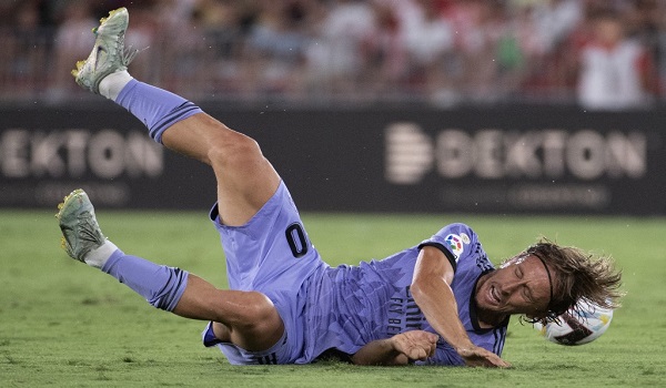 (Pemain tengah Real Madrid dari Croatia, Luka Modric terjatuh semasa perlawanan