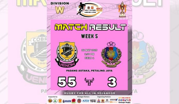 KUALA LUMPUR, 24 Mei – Pasukan ragbi wanita Cobra Venom terus pamer dominasi dalam saingan Liga MSNS-KRS apabila membenam pasukan ragbi wanita Angkatan Tentera Malaysia (ATM) dengan kemenangan bergaya 55-3.