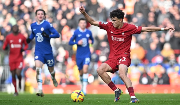 (Pemain pertahanan Liverpool, Stefan Bajcetic mengawal bola ketika perlawanan bola sepak
