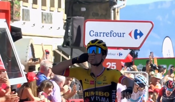 Pelumba pasukan Jumbo-Visma itu berjaya lari dari kumpuilan peloton, 300 meter sebelum penamat melepasi Mads Pedersen dai Pauskan Trek Segafedo.