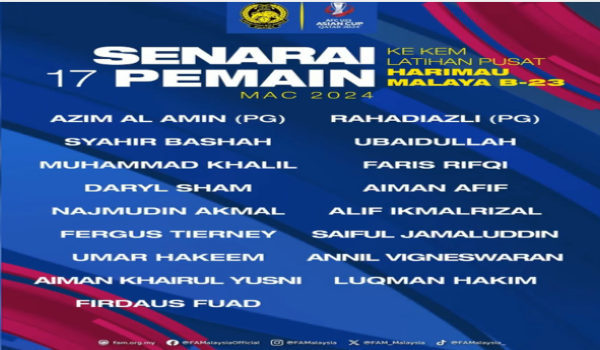 Persatuan Bolasepak Malaysia (FAM) memaklumkan, kem latihan skuad Harimau Muda itu merupakan persediaan mengharungi Piala Asia Bawah 23 2024 di Qatar, dari 15 April hingga 3 Mei ini.