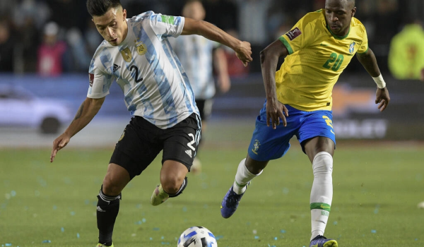 (Aksi pemain pertahanan antarabangsa Argentina, Lisandro Martinez (kiri) pada perlawanan