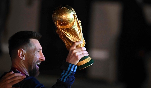 (Lionel Messi bersama Trofi Piala Dunia/AFP)