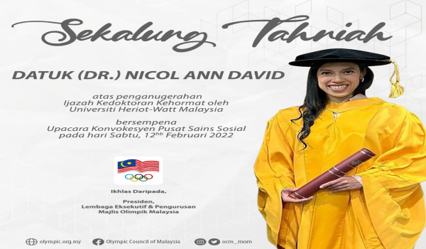 MOM merakamkan setinggi-tinggi tahniah kepada Datuk Dr Nicol David, di atas penganugerahan tersebut.