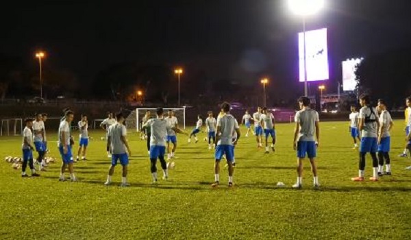 (Nik Akif bersama Skuad Bawah B-23 ketika sesi latihan di padang)