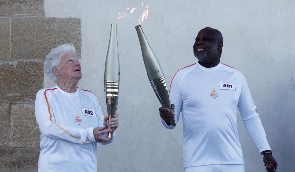 Kemudian, obor api itu diserahkan kepada Colette Cataldo, 83 tahun, salah seorang pembawa obor Perancis.