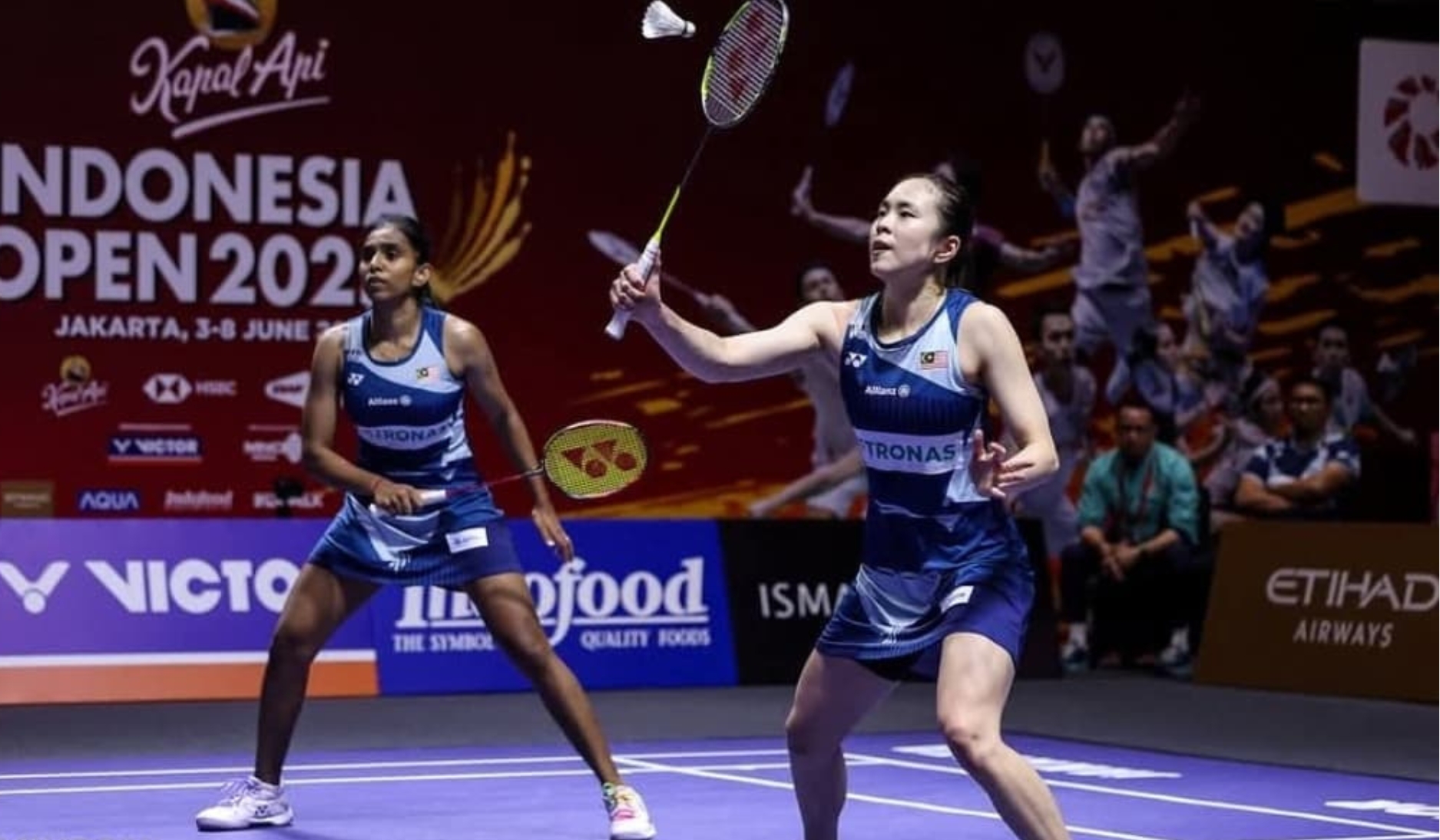 Dalam perlawanan separuh akhir yang berlangsung di Istora Senayan, Jakarta, pasangan di kedudukan keempat dunia itu tewas pada set pertama kepada gandingan China, Li Yi Feng-Luo Xu Min dengan keputusan 12-21.