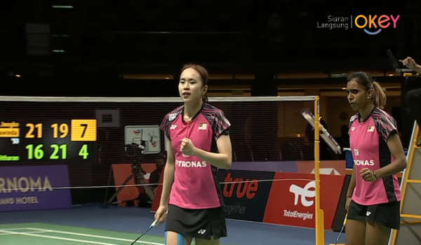 Bangkit menyamakan kedudukan apabila beregu wanita, Pearly Tan-M.Thinaah mengatasi gandingan Jongkolphan Kititharakul-Rawinda Prajongjai,16-21, 21-19, 21-17.