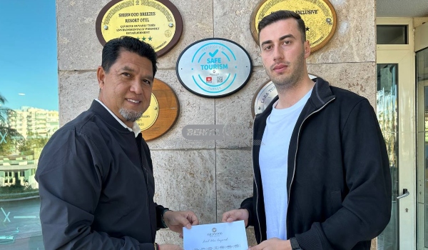 tunai kepada wakil penduduk Aksu di sebuah hotel di Antalya, Turkiye/FOTO Facebook KDA FC)