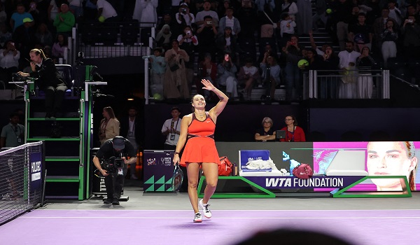Pemain dari Belarus itu kini mara ke pentas akhir buat kali kedua dalam lima penampilan di kejohanan penutup musim tersebut, dan bakal berdepan Elena Rybakina dari Kazakhstan yang menundukkan pilihan kelima, Jessica Pegula 4-6, 6-4, 6-3 di Arena Tertutup Universiti Raja Saud.