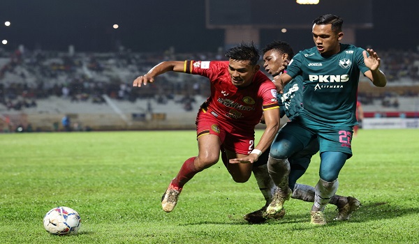 (Pemain Negeri Sembilan Che Rashid Che Halim (kiri) dikawal oleh pemain pertahanan