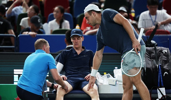 Pasukan perubatan memberikan bantuan awal dan Sinner terpaksa menamatkan permainan ketika keputusan mencatatkan 6-7(3), 7-5, 3-2.