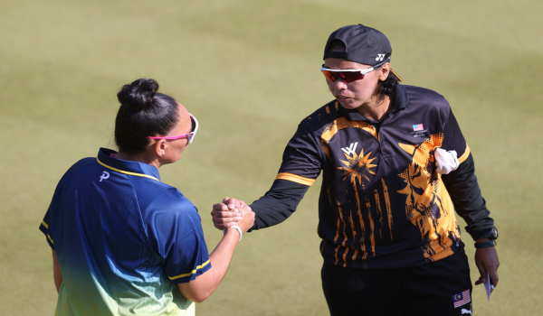 Skuad wanita bertiga negara yang dibarisi Nur Ain Nabilah Tarmizi, Syafiqa Haidar Afif Abdul Rahman dan Azlina Arshad pula terpaksa berhempas pulas sebelum menewaskan gandingan Jennifer MacDonald, Leanne Chinery dan Kelly McKerihen, dari Kanada, 18-17 dalam acara triples wanita.-BERNAMA