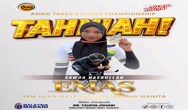 PUTRAJAYA, 1 April – Kejayaan pelumba remaja trek sensasi negara Sawda Hasbullah merangkul pingat emas acara ujian masa 1 kilometer kategori remaja wanita dalam Kejohanan Berbasikal Trek Asia (ACC) 2026, baru-baru ini adalah satu pencapaian membanggakan.