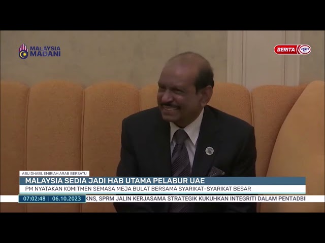 Malaysia sedia menjadi hab utama bagi pelaburan dari UAE. Komitmen tersebut dinyatakan oleh Perdana Menteri ketika sesi pertemuan dengan kapten industry di Abu Dhabi yang menunjukkan minat untuk menambah pelaburan. Ikhwan Samsudin ada laporannya.
