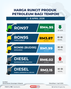 HARGA RUNCIT PRODUK PETROLEUM BAGI TEMPOH 2-8 APRIL 2026