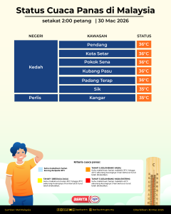 STATUS CUACA PANAS DI MALAYSIA SETAKAT 2:00 PETANG | 30 MAC 2026