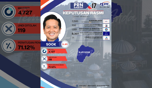 KUALA LUMPUR, 30 November – Suruhanjaya Pilihan Raya (SPR) hari ini mengeluarkan keputusan penuh Pilihan Raya Negeri (PRN) Sabah ke-17 melibatkan 73 kerusi Dewan Undangan...