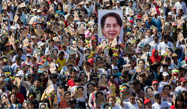 Ketika itu beliau mengetuai parti Liga Demokrasi Kebangsaan (NLD) dan memainkan peranan penting dalam peralihan negara itu ke arah pentadbiran demokrasi.