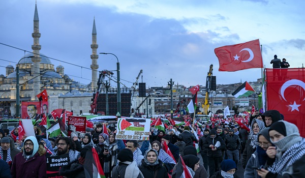 ISTANBUL, 2 Januari - Kira-kira 520,000 orang berhimpun di Jambatan Galata, Istanbul pada awal pagi Khamis, hari pertama Tahun Baharu bagi menyertai perarakan besar-besaran menyokong Palestin, yang dianjurkan di bawah payung Humanity Alliance dan National Will Platform, lapor Anadolu Ajansi (AA).