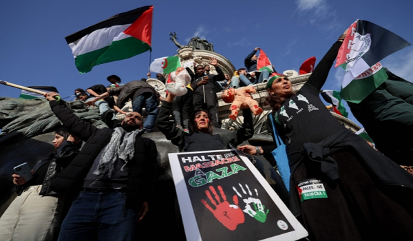 “Pembunuh Israel, Macron bersekongkol” dan “Tiada keamanan tanpa dekolonisasi” adalah antara slogan pada demonstrasi di dataran Place de la Republique di timur Paris, yang dipanggil sebagai kolektif sayap kiri.