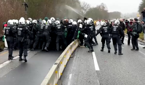 GIESSEN, 29 November- Polis Jerman bertempur dengan kumpulan penunjuk perasaan di bandar universiti Giessen, utara Frankfurt selepas protes besar-besaran dilancarkan bagi menghalang penubuhan sebuah pertubuhan belia baharu iaitu Alternative for Germany (AfD).