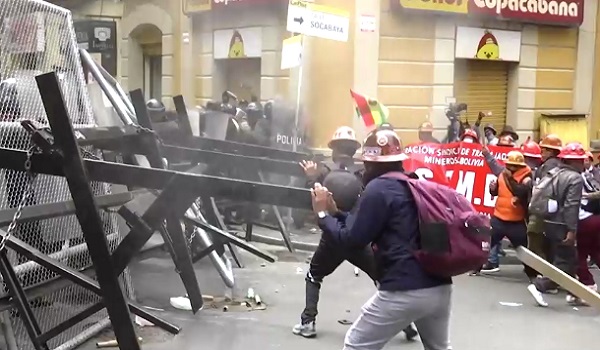 Pasukan keselamatan menutup akses ke Plaza Murillo, yang menempatkan istana presiden dan bangunan Kongres, apabila ratusan penunjuk perasaan cuba memasuki zon terhad itu.