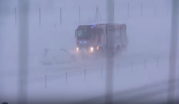 Video yang dikongsi di media sosial menunjukkan kereta-kereta tersekat antara Olsztynek dan Ostroda, dengan salji tebal menutupi sebahagian besar permukaan jalan.