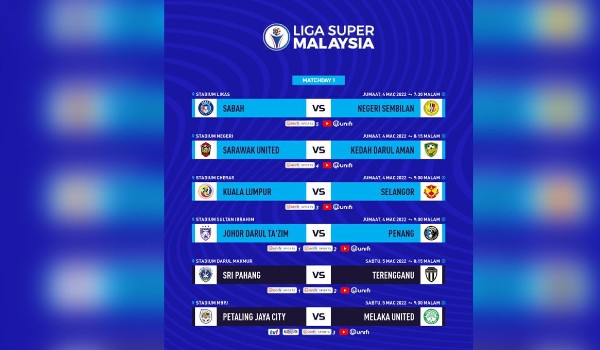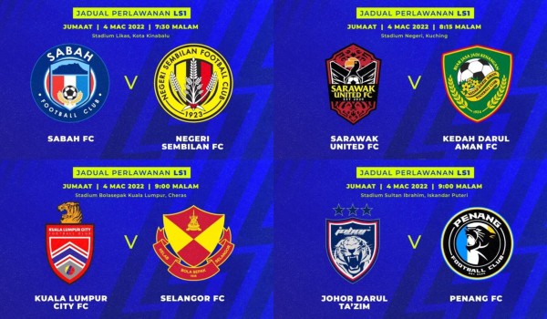 KUALA LUMPUR, 4 Mac – Kempen musim 2022 bagi 22 pasukan Liga Bola Sepak Malaysia (Liga M) bermula hari ini dengan 5 perlawanan melibatkan pasukan daripada Liga Super.