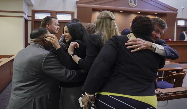 (Pasukan perundangan Johnny Depp berpelukan selepas juri memutuskan bahawa mereka percaya Amber Heard memfitnah bekas suaminya Johnny Depp)