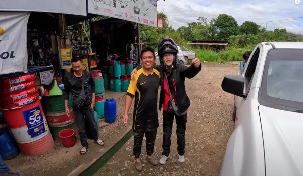 Namun, nasib pasangan tersebut baik selepas beberapa penduduk tempatan yang melalui kawasan tersebut menolong mengangkut motosikal menggunakan kenderaan pacuan empat roda sebelum membawa pasangan tersebut ke bengkel berdekatan.
