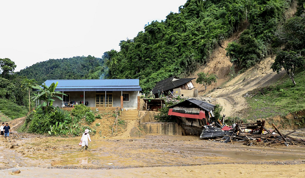 Foto di media kerajaan menunjukkan air banjir telah naik ke bumbung ratusan rumah di wilayah Dien Bien Bien dan dihanyutkan serta mengakibatkan jalan tertimbus di kawasan itu.