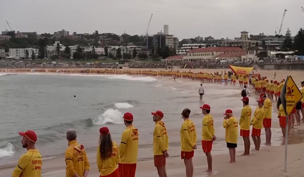 Menurut seorang jurucakap penyelamat pantai Australia, para sukarelawan dan penyelamat pantai profesional Bondi, yang memakai pakaian seragam merah dan kuning, berdiri di atas pasir selama dua minit untuk memperingati mangsa tembakan itu.