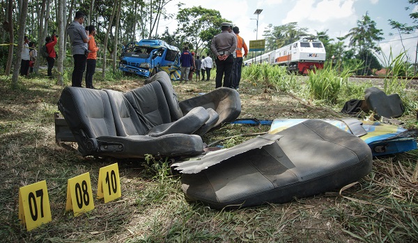 Kereta api tersebut dalam perjalanan menuju ke bandar pelabuhan Surabaya apabila ia melanggar sebuah bas yang membawa kira-kira 12 penumpang, kira-kira pukul 8.00 malam waktu tempatan, lapor stesen televisyen tempatan, Kompas TV.
