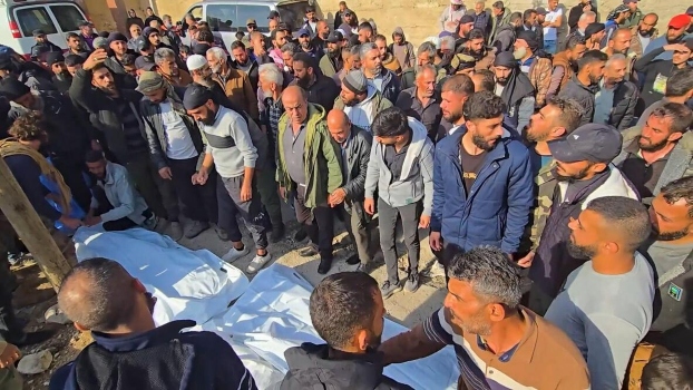 Rakaman menunjukkan ambulans tiba membawa mangsa yang cedera parah, sementara ahli keluarga meratapi jasad saudara mereka sebelum penduduk berkumpul menunaikan solat jenazah dan mengiringi mangsa ke tanah perkuburan.