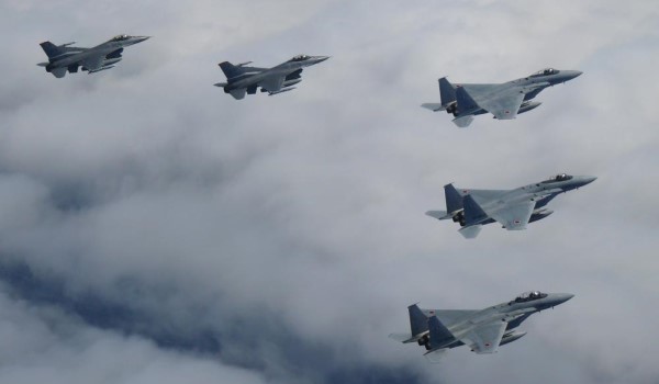 Pakatan itu bertindak menerbangkan pesawat mereka sehari selepas mereka melancarkan lapan peluru berpandu ke kawasan lautan berdekatan negara Jepun.