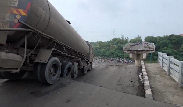 Sebahagian daripada jambatan yang merentasi Sungai Mahisagar berkenaan, runtuh pada Rabu di Daerah Vadodara, kira-kira 151 kilometer tenggara Gandhinagar, ibu negeri Gujarat.