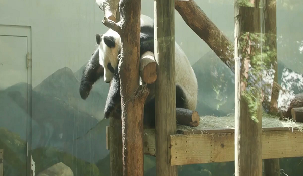Rakaman menunjukkan barisan panjang pengunjung di luar zoo yang mengambil gambar panda berkenaan.